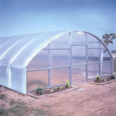 Designed for single poly or double poly roof covering and includes pre-cut and punched components for easy bolt-together assembly. Also can be fitted with shade cloth.