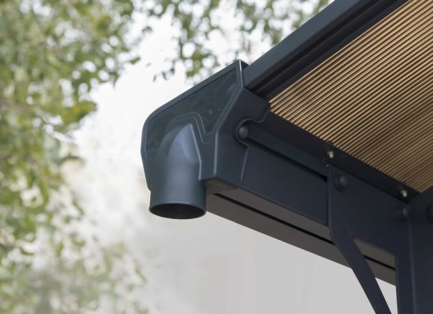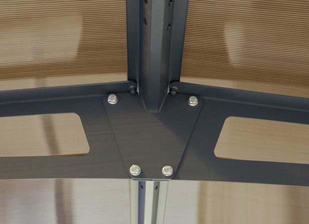 FEATURING – Super seal roofing system: Provides great sealing performance under severe weather conditions and prevents panels from thermal expansion damages. One of the main issues with multi-wall panels is dust and moisture penetration into the internal voids. The problem is magnified especially when dealing with transparent or translucent panels. There are two common ways to solve the issue used on inferior gazebos: 1. Different kinds of tapes with limited adhesive strength and life span. 2. Crumpling the sheet edge but thus preventing the use of any capping Aluminum profile. ARCADIA Gazebo features include: