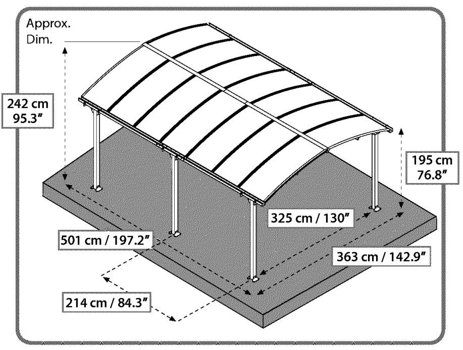 ARCADIA GAZEBO CARPORT is a stylish, sturdy and low-maintenance DIY gazebo. Aesthetically elegant, the structure is sturdy, durable and maintenance-free, being manufactured from rust resistant powdercoated aluminium and steel and roofed with virtually unbreakable UV-stabilised polycarbonate Twinwall sheet. Supplied in easy to assemble kit form, the ARCADIA is engineered to be constructed without the need for special building skills and using ordinary household tools.