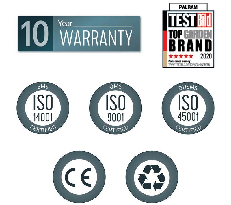 A 10 year limited warranty is standard on CANOPIA – PALRAM’s Gazebo range. Beware of competing products with only a short, 12 month warranty. Ours are built to last!