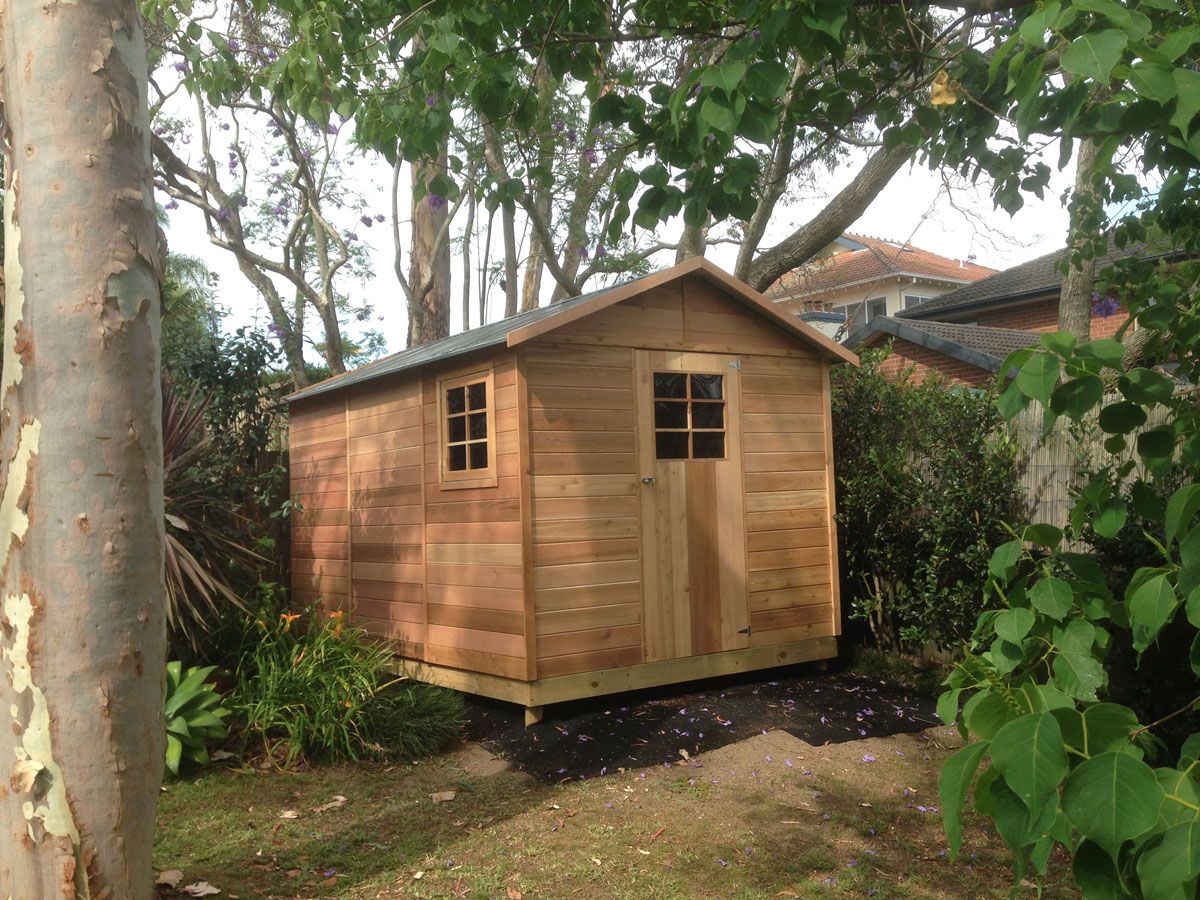 Typically time required for assembly is about 4-6 hours. The unit can be sited on a concrete base or paved area, or a flooring kit can be used. Installation of the Cedar garden shed products is a relatively simple process. The first step is to choose a nice level site in your yard. The floor position is marked out in a base constructed either using a recommended HD floor kit or by laying a concrete slab. The HD kit has been specifically designed to reduce site works where the ground is not level. Once the floor is in position the next step is to erect the pre-made walls. Starting at the front corner, the panels are joined and gables fastened into position. The roof is then assembled on the ground, lifted into position and fastened to the walls. Next the hinges are attached to the door, the door fastened to the wall and the door handle installed. Finally, the corner posts, cover strips, fascias and the ridge capping are attached to complete the product.
