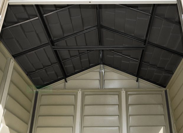 The DURAMAX YARDMATE PLUS 5×8 is built to last with a tough, all-weather, durable structure. The wall columns are reinforced with steel which allows you to easily mount shelves or garden tools. It has a roomy interior wall height and gabled roof. This functional backyard shed comes with wide double doors that are large enough to give you full use of the storage volume. The YardMate series features a 5′ wide format that’s ideal for smaller yards or patios. This shed features a complete reinforced vinyl floor that eliminates the need for building a foundation. Ready to assemble with pre-made materials. Buy DURAMAX YARDMATE PLUS 5’x8′ SHED Online.