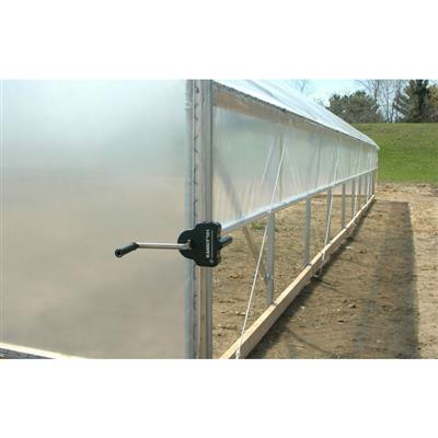 Complete package price includes: Everything in the frame only price and: upper and baseboard lumber U-clamps, end-wall lumber mount fittings and hardware, Wiggle Wire poly fastening system, single-layer clear poly roof and ends. (2) full-length manual roll-up ventilation systems. Lumber not included.