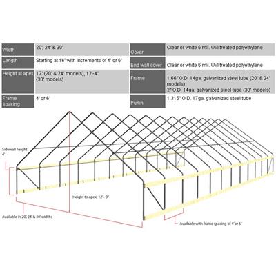 • Frame Spacing: 4′ or 6′