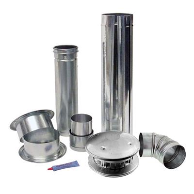 Safely exhaust your power vented gas-fired heater with our easy-to-use horizontal vent kit. Each kit contains 9-1/2 feet of vent pipe, a corrosion resistant galvanized steel vent cap, wall thimble.