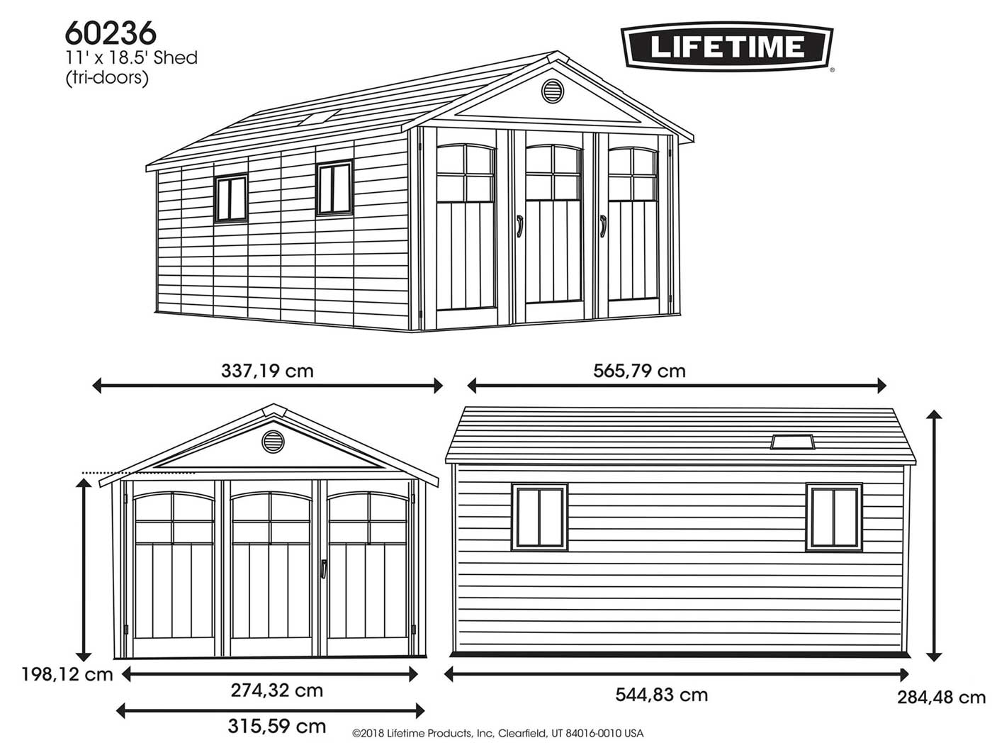 LIFETIME 11′ x 18.5′ SHED / GARAGE 3.4mx5.7m