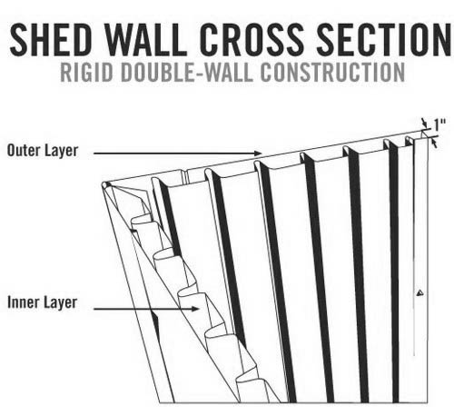 The steel-reinforced walls and lockable doors give greater security to your belongings. Store smaller items with the versatile and customizable shelving system. Slip-resistant floors protect from oil, solvents, and other stains. The weather-resistant build, heavy-duty steel trusses, and pitched roof offer excellent protection from the elements. The attractive, low maintenance design minimizes upkeep and keeps your shed looking great for years.