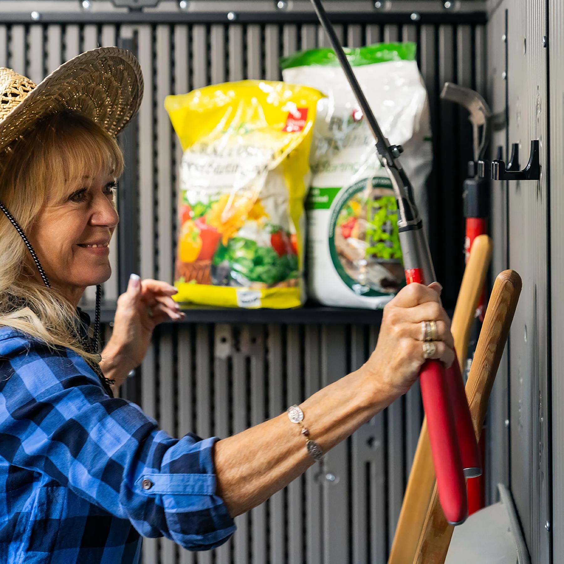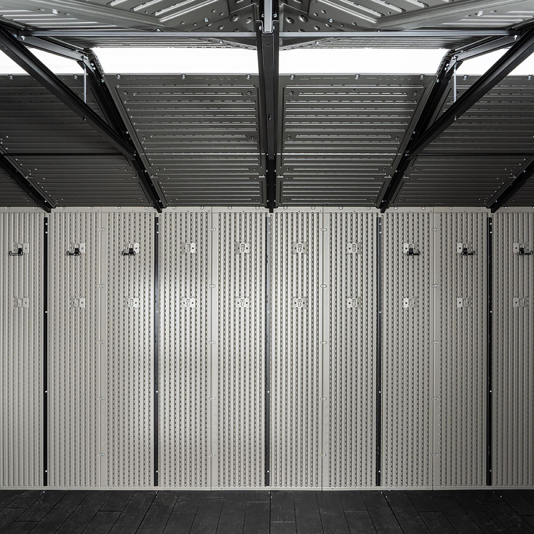 Work in confidence on the slip-resistant floor that protects against oil, solvents, and stains, and is easy to clean just like the rest of the shed. You can also protect your gear behind lockable steel-reinforced doors.