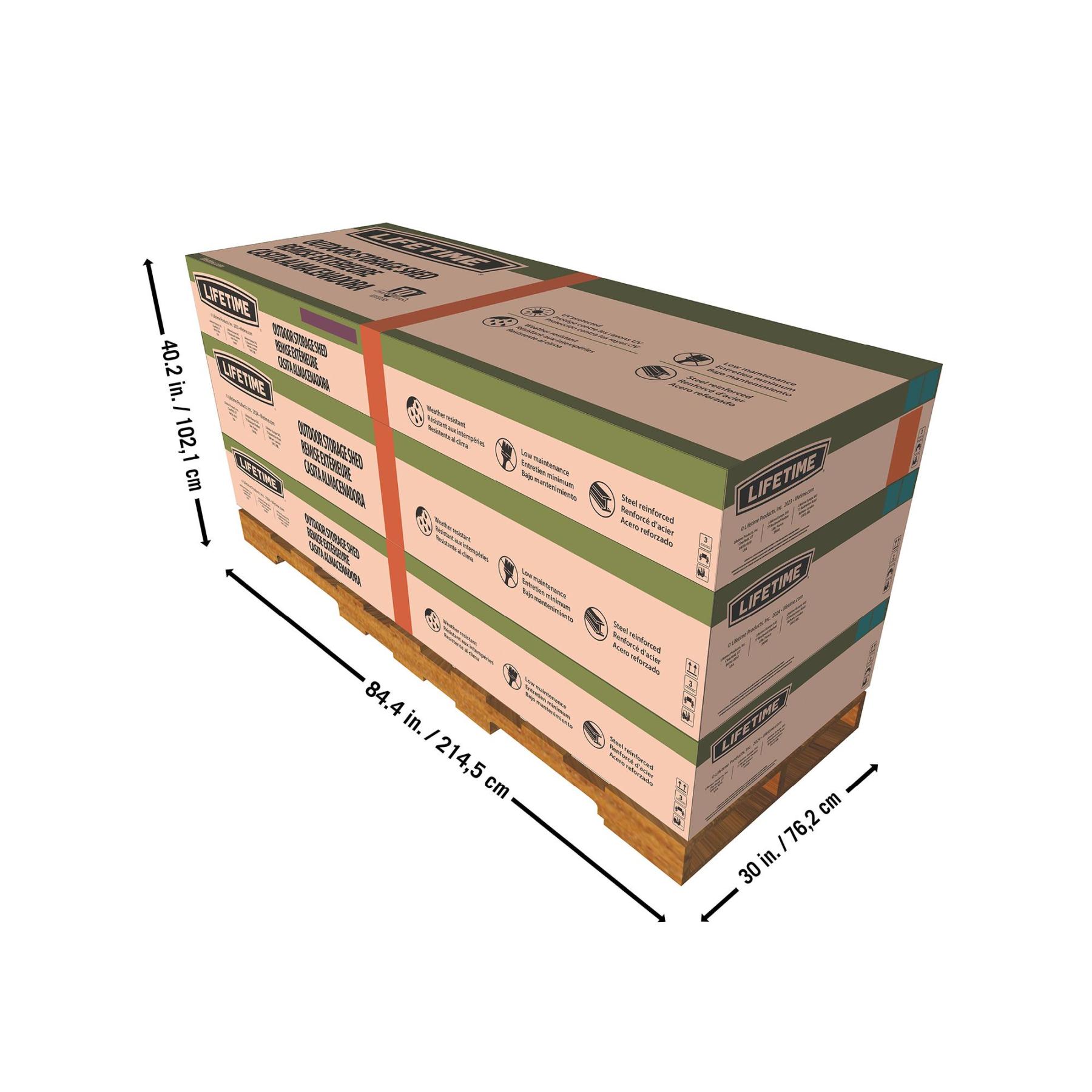 Organize your yard, store your outdoor supplies and furniture, and stow your lawn and garden equipment more easily than ever before with the Lifetime Metal Reinforced Outdoor Storage Shed. Set up your space how you want it with height-adjustable shelving and enjoy the low maintenance of a UV-protected finish that protects against damage from weather and the elements. Six skylights provide rich natural interior lighting and the high-pitched roof allows for quick drainage of rain and snow.