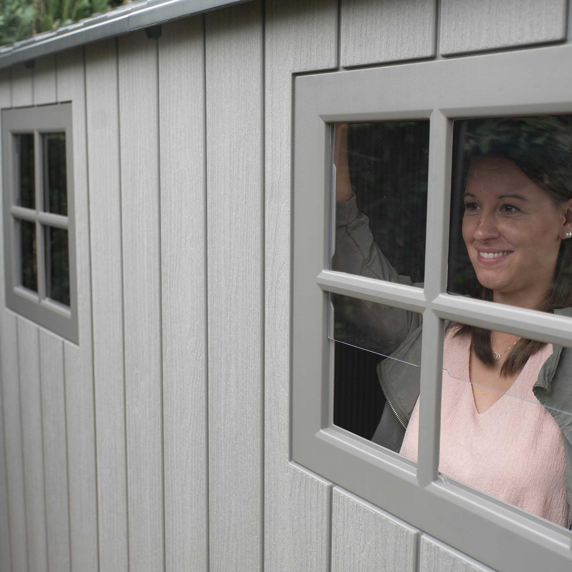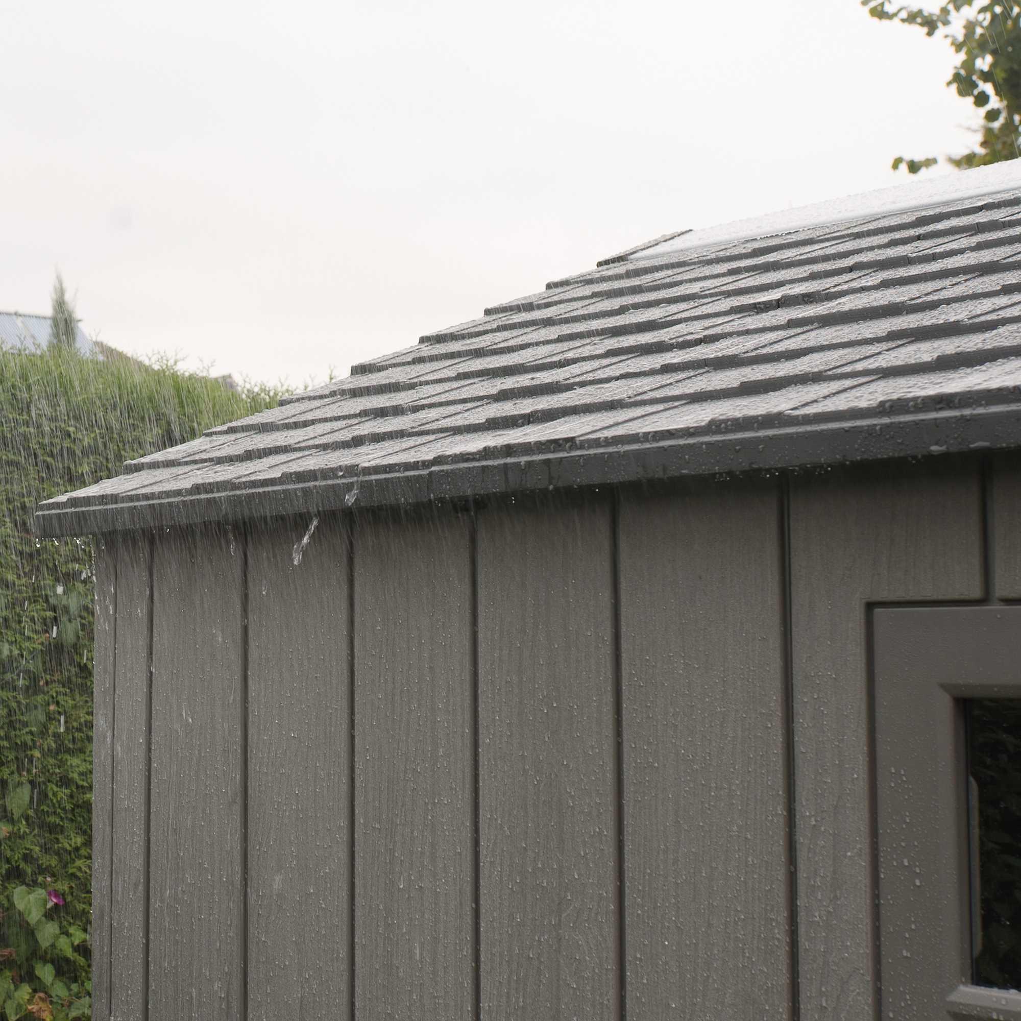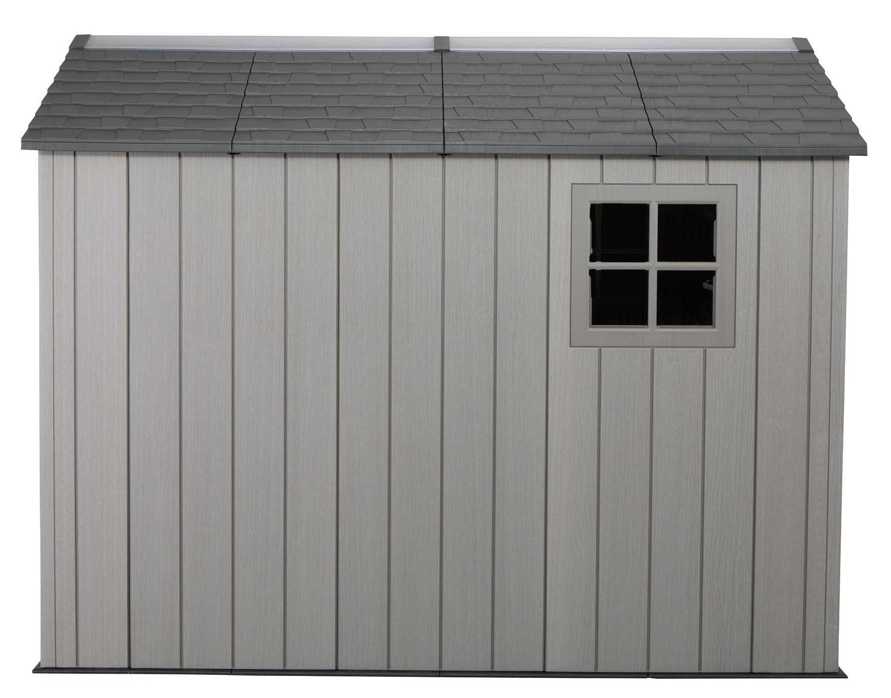 The LIFETIME 7×9.5 GARDEN SHEDa high quality outdoor storage shed to keep your garden equipment, tools, bikes and toys safe, dry and secure. The molded woodgrain wall panels and simulated shingle roof ensure that it is an attractive addition to your property as well as a solution to your storage needs.