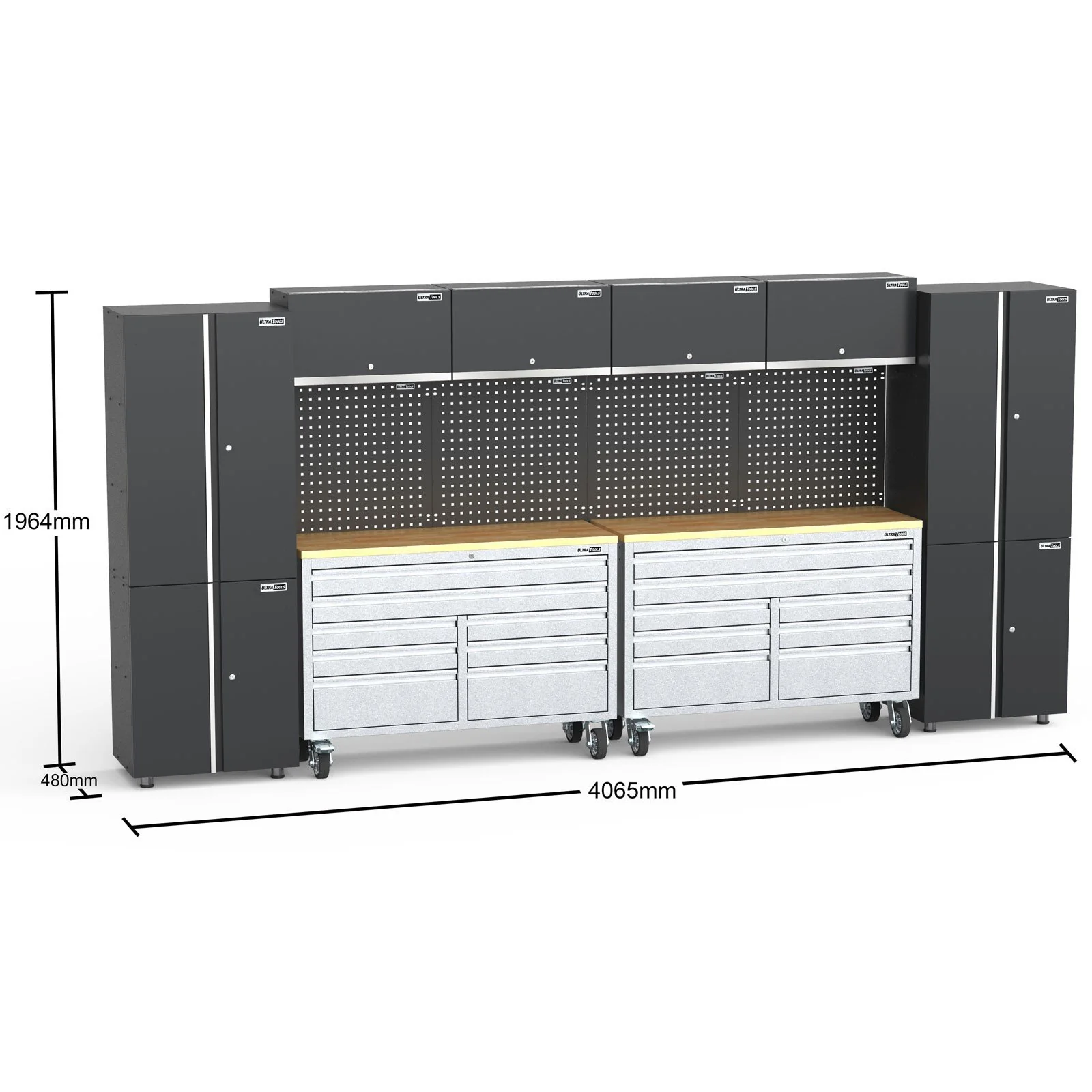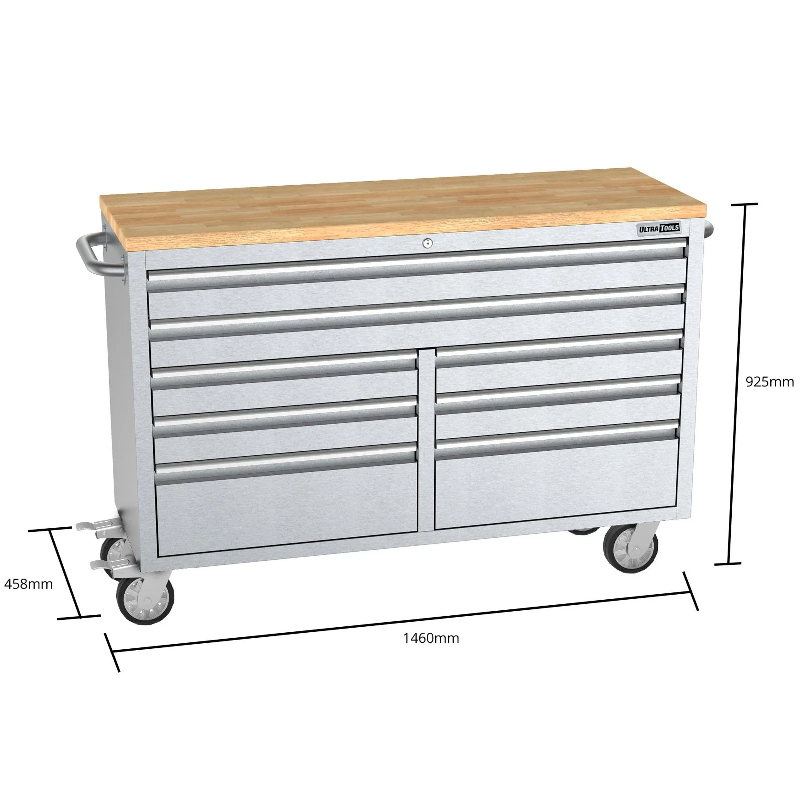 Mobile 8 Drawers Tool Chest With Storage Cabinets – UltraTools 4062mm x 480mm x 1964mm Stainless Steel 52″