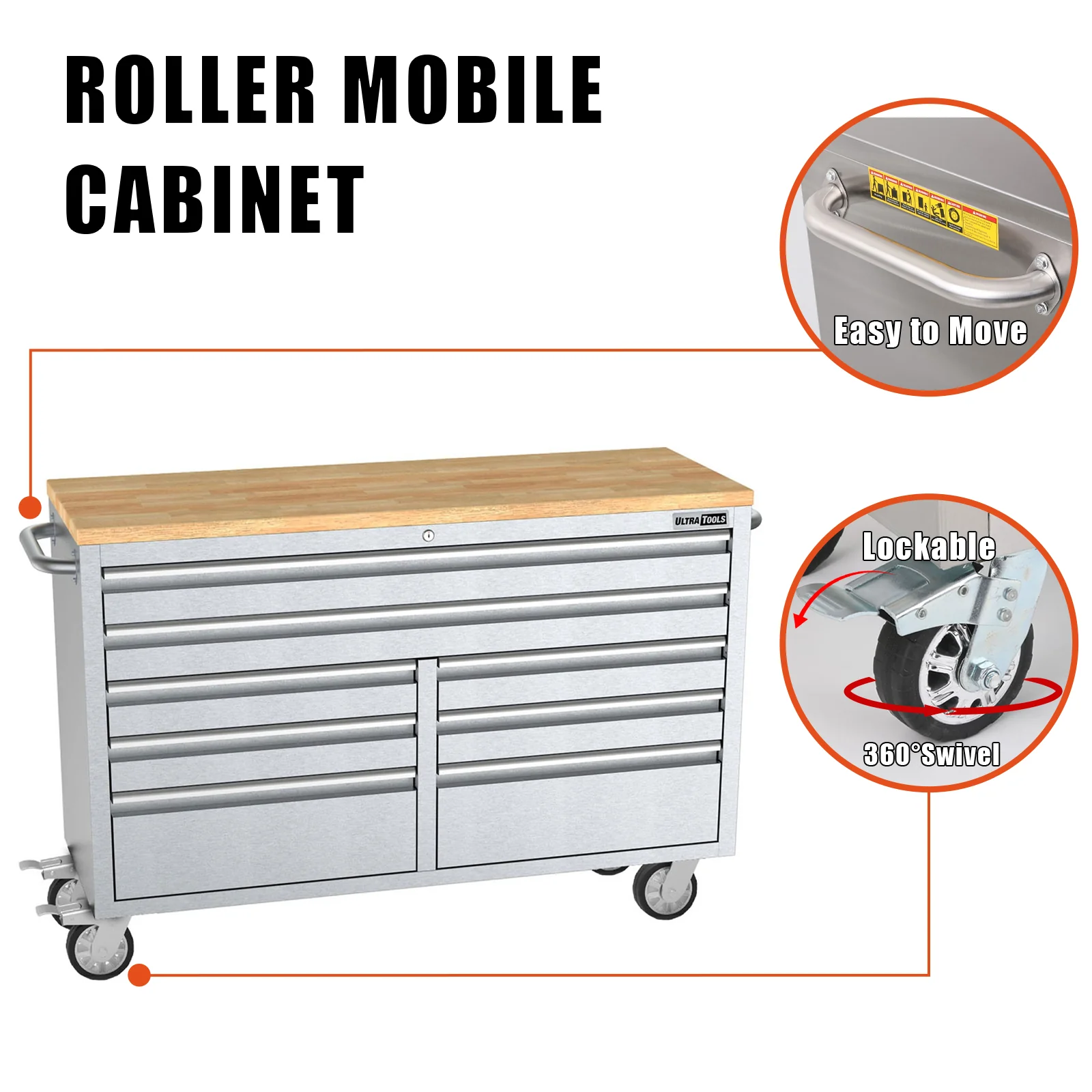 Built to meet the demands of professionals, this roller cabinet integrates strength and functionality into one premium storage solution. Crafted from 430-grade anti-fingerprint stainless steel and solid hardwood, it features stainless steel push handles and fully lined drawers for a high-quality, sleek finish.