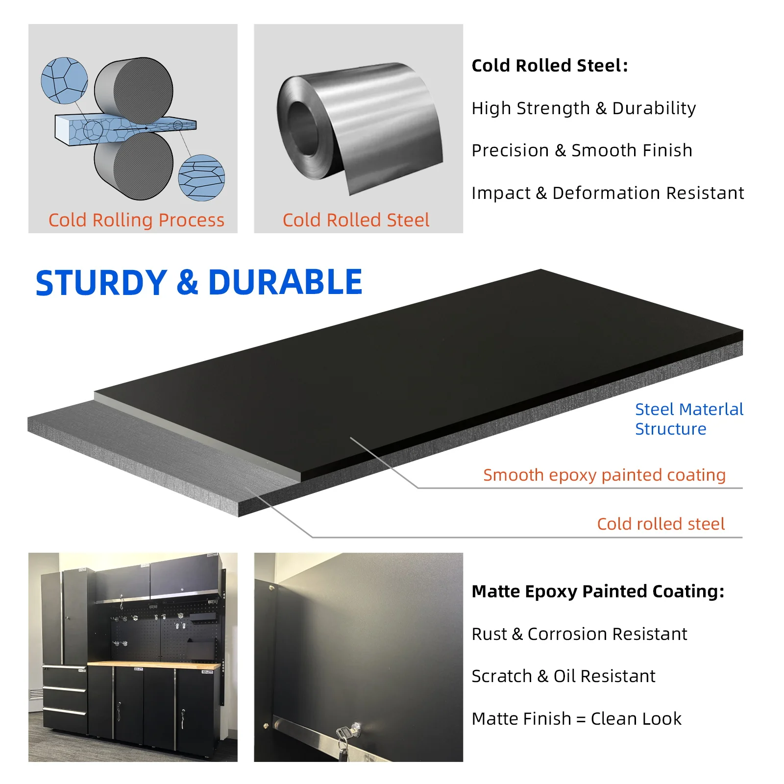 - Material: Cold-rolled steel for durability