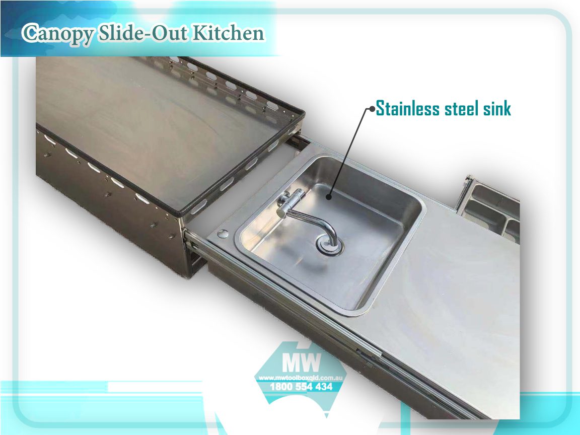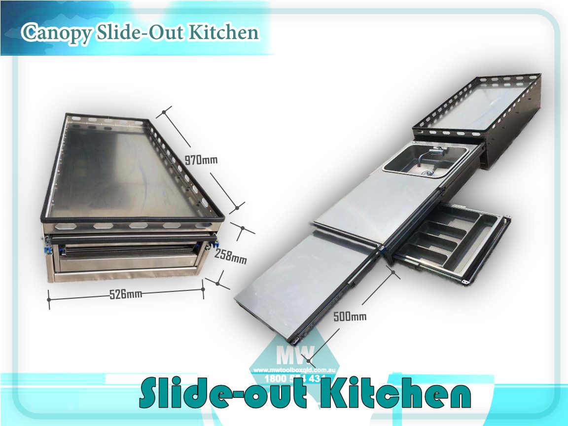• Unlike your kitchen in the house, this MW Slide-out Kitchen® is your most needed camping gear for your 4 wheel drive and campers. Whether it’s on your camping trips, a weekend away with the family, or just simply a quick feed before going to the worksite, the Ultimate Slide out Kitchen will pleasantly make everything so much easier and hassle free!