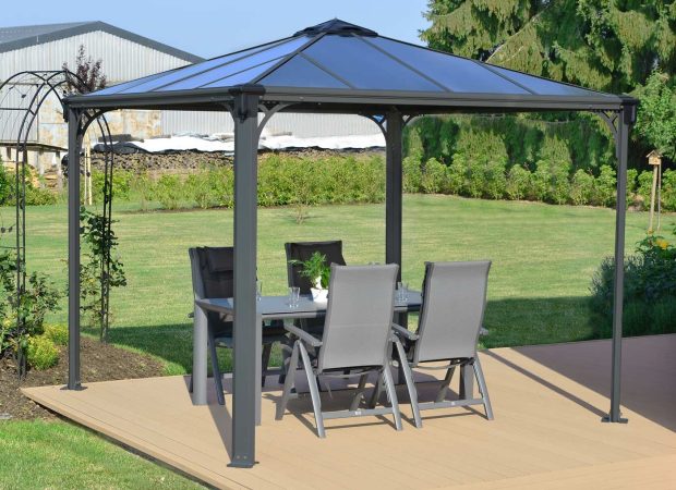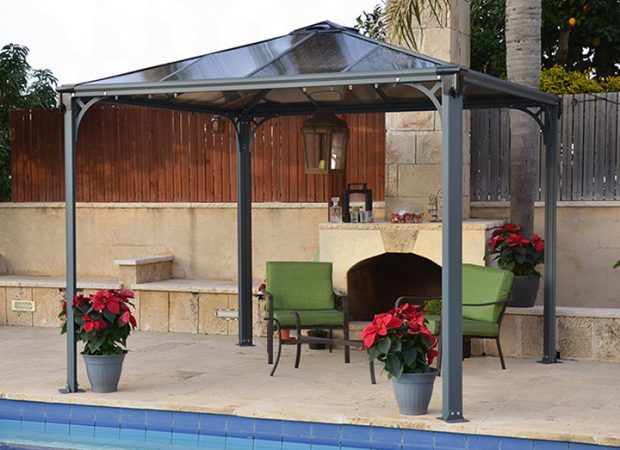 The PALERMO 3000 GAZEBO is the perfect finishing touch for your outdoor living area – offering a solid and attractive shelter for barbeque and poolside situations. Designed for durability as well as elegance, it combines high quality aluminium extrusion and steel componentry powdercoated in ANTHRACITE GREY with virtually unbreakable GREY 6.00mm Twinwall polycarbonate glazing which is UV-stabilised. The gazebo is supplied as an easy to assemble DIY kit with pre-drilled componentry ensuring that no special tools are required and that the project is well within the capacity of the average DIY installer. Buy Gazebo in Australia for sale here.