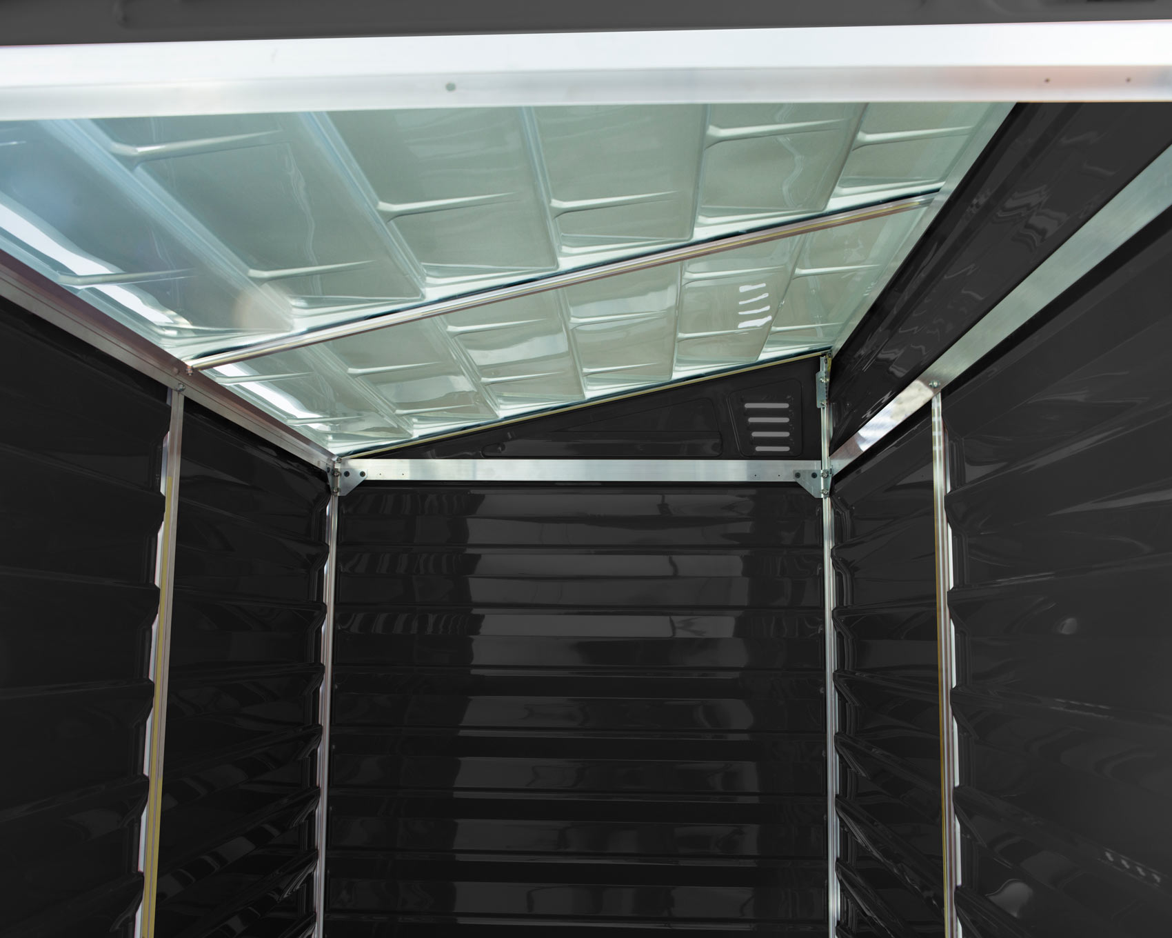 SKYLIGHT ROOF – another innovative feature of the CANOPIA – PALRAM SKYLIGHT garden shed is the translucent polycarbonate roof, which allows daylight into the unit.  This makes windows unnecessary, saving cost and increasing security.  The roof is opaque, ensuring privacy and preventing harmful UV rays from damaging stored items.