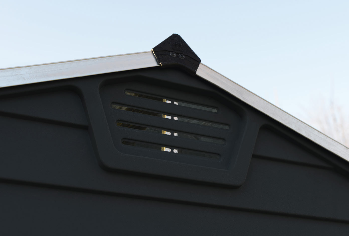 SKYLIGHT ROOF – another innovative feature of the CANOPIA – PALRAM SKYLIGHT garden shed is the translucent polycarbonate roof, which allows daylight into the unit. This makes windows unnecessary, saving cost and increasing security. The roof is opaque, ensuring privacy and preventing harmful UV rays from damaging stored items. VENTILATED – vents in the top of the front and rear walls are a standard feature on the SKYLIGHT sheds.