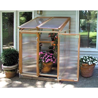 Great for gardeners with limited space but that need more than a cold frame. This structure includes four adjustable benches to give you flexibility and room to grow many different plants. Two doors and an automatic vent opener are included. The Patio GardenHouse is constructed using durable redwood framing, can be easily moved and is a convenient size for use on a patio or deck.