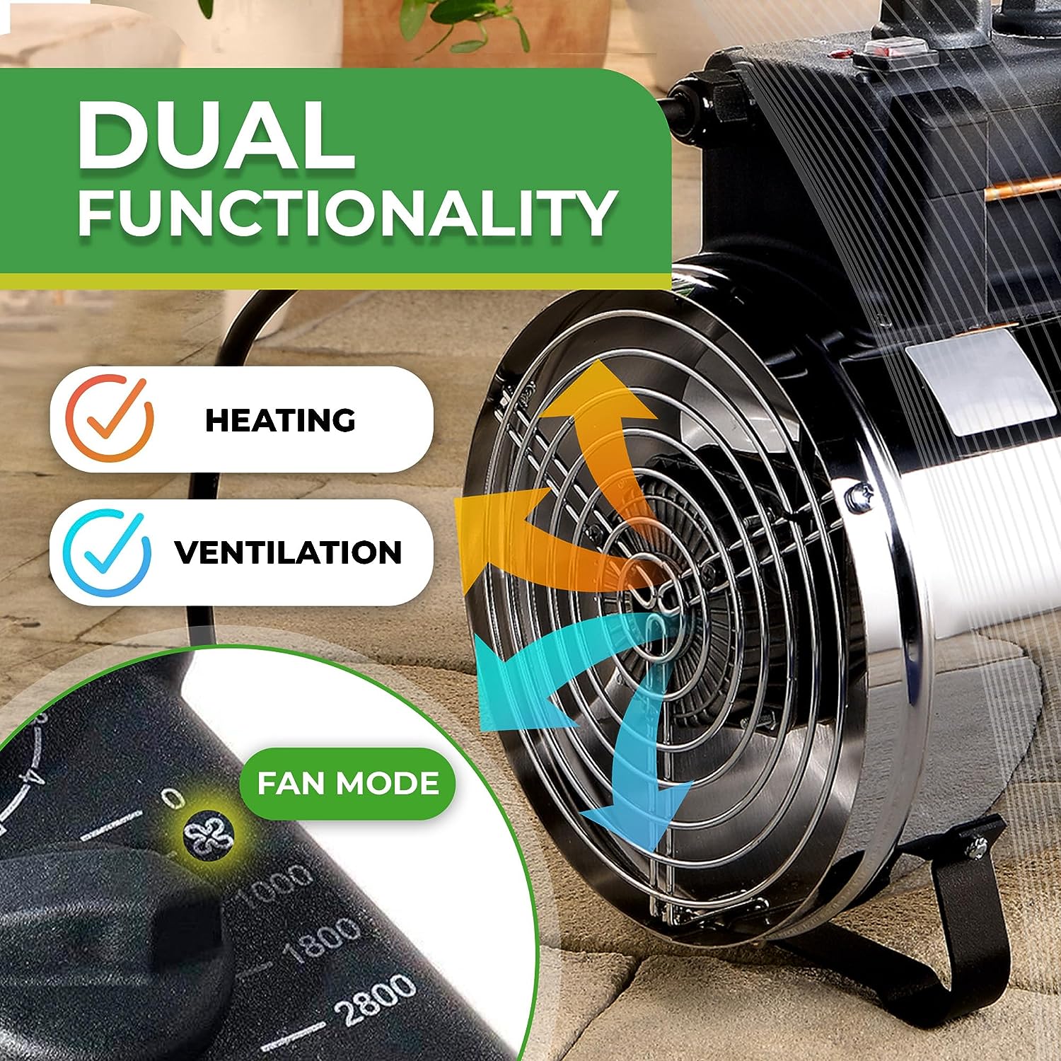 - Splash-proof according to IPX4: thanks to splash protection the heater can also be used safely and reliably in damp rooms. Even rain and irrigation water can easily withstand the greenhouse heating. So you can enjoy the electric heater for a long time.