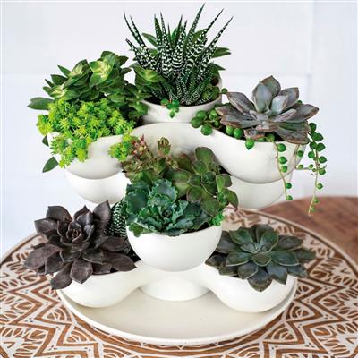 The Pixie Succulent Stacking Planter measures 8.27″L x 8.27″W x 8″H.