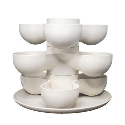 The Pixie Succulent Stacking Planter includes three planting layers and a saucer to protect surfaces. Includes a drain hole in each cup on every level for proper succulent care. The 8″ vanilla bisque colored planter holds a minimum of 10 planted succulents.