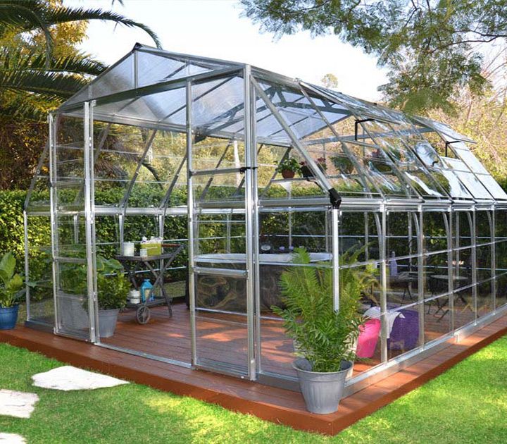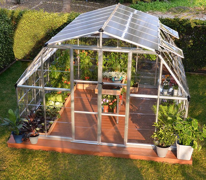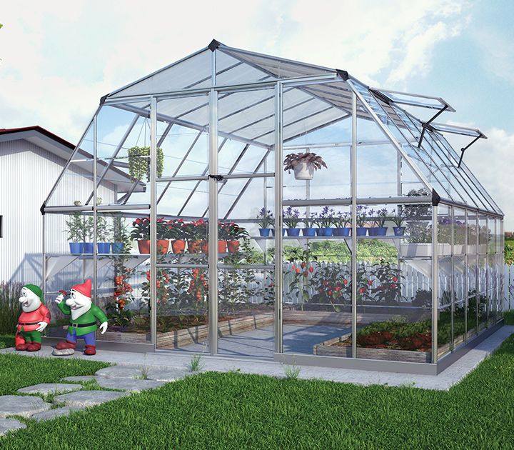 The AMERICANA 12 x 12 GREENHOUSE with polycarbonate glazing and durable aluminium frame is ideal for the serious gardener. Build your own large greenhouse, providing almost 13 square metres of floor area. The SILVER LINE AMERICANA 12 x 12 is widely used in organic community gardens and schools as well as in residential situations.