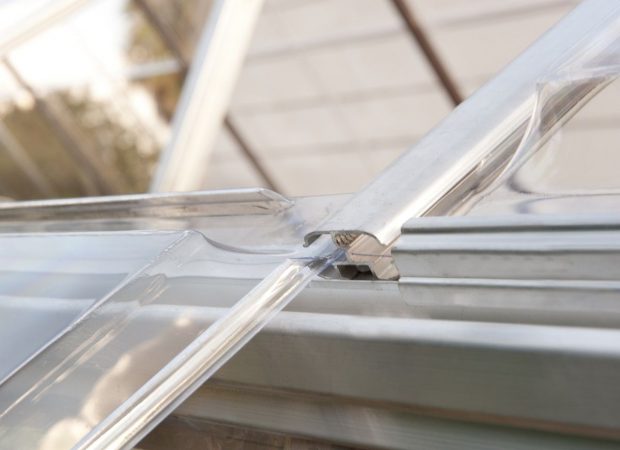 POLYCARBONATE GREENHOUSES from SILVER LINE with FREE DELIVERY – superbly designed and carefully manufactured greenhouse kit units supplied in boxed form for easy transport. SILVER LINE GREENHOUSES are constructed from strong aluminium frames and panels of almost unbreakable clear polycarbonate. Polycarbonate has greater insulation properties than glass, blocking harmful UV rays but allowing 90% light transmission, resulting in more even humidity and temperature levels inside the greenhouse. See why polycarbonate is widely used instead of glass in greenhouses these days. SILVER LINE GREENHOUSE 6 x 6 features include: