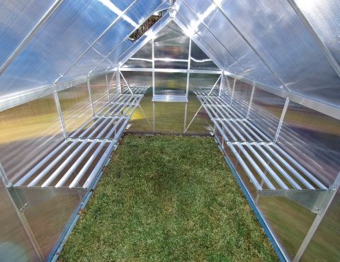 GREENHOUSES from SILVER LINE with FREE DELIVERY – superbly designed and carefully manufactured greenhouse kit units supplied in boxed form for easy transport. SILVER LINE GREENHOUSES are constructed from strong aluminium frames and panels of almost unbreakable clear polycarbonate, and are priced at a level which offers unbeatable value for money! Polycarbonate has greater insulation properties than glass, blocking harmful UV rays but allowing 90% light transmission, resulting in more even humidity and temperature levels inside the greenhouse.
