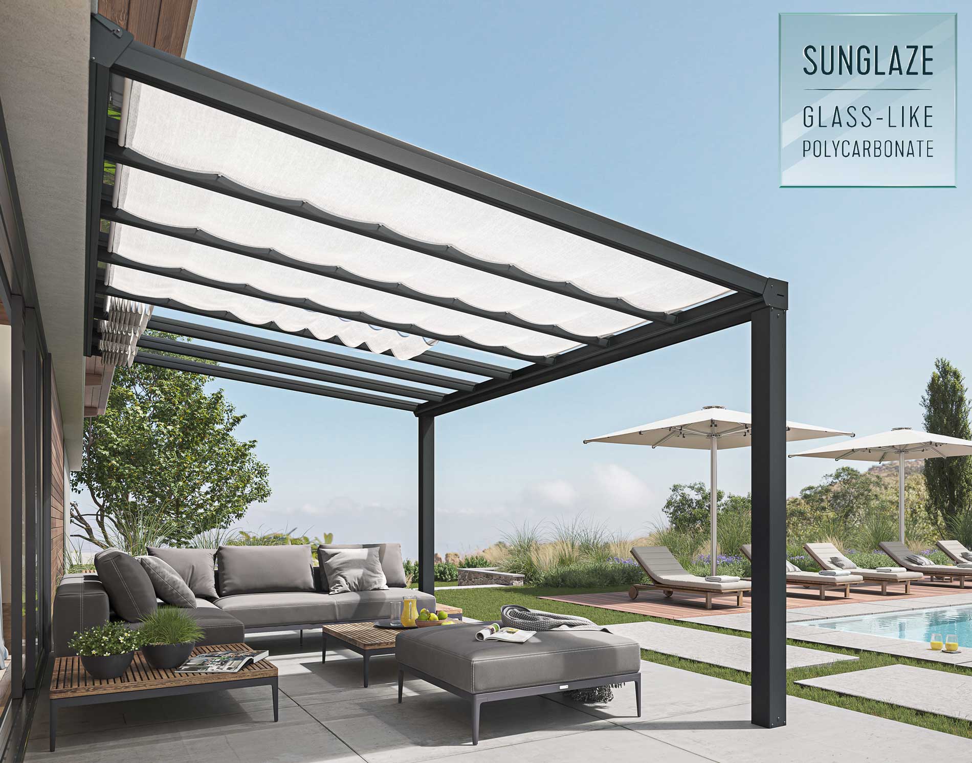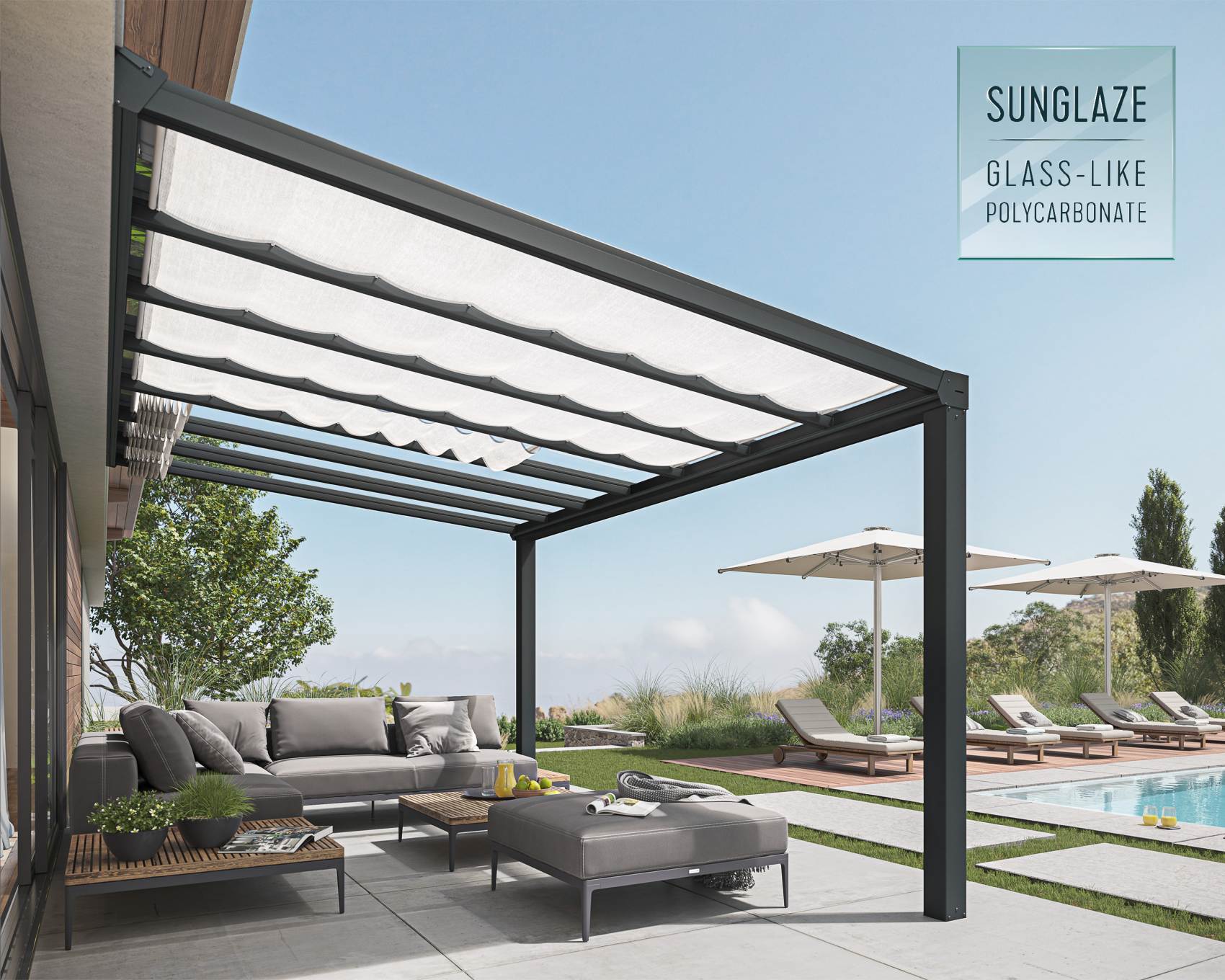 The Stockholm patio cover and outdoor structure has a robust, clean-lined design and provides you with an elegant living space to embrace the outdoors while being protected from the elements. This modern awning is designed to be enjoyed all year-round; allowing you to spend more time relaxing, or simply enjoying the view of your garden.