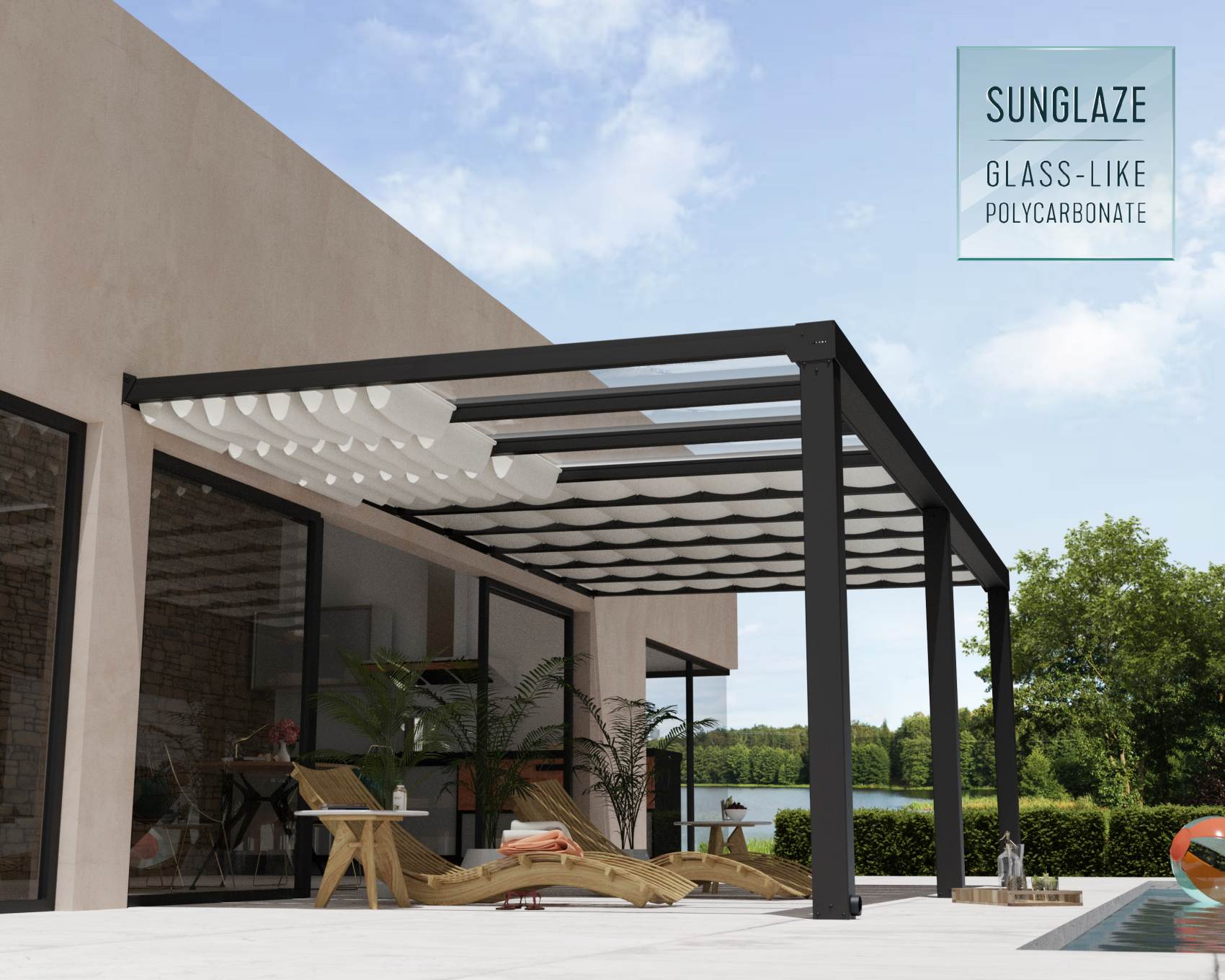 The Stockholm patio cover and outdoor structure has a robust, clean-lined design and provides you with an elegant living space to embrace the outdoors while being protected from the elements. This modern awning is designed to be enjoyed all year-round; allowing you to spend more time relaxing, or simply enjoying the view of your garden.