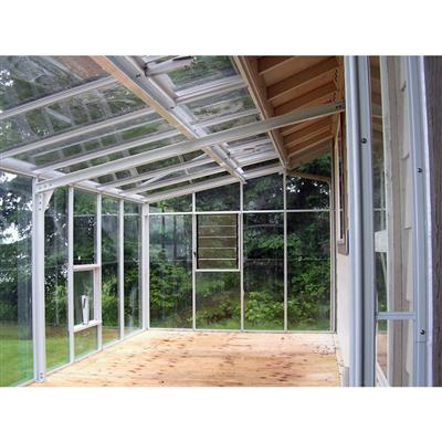 Add grace and beauty to your home with this beautiful Traditional Series Lean-to Glass Greenhouse. Sturdy aluminum frame and tempered safety glass offers year round durability for almost any location. Comes standard with beautiful clear 3mm tempered lapped glass covering on the roof and sidewalls. One piece 6mm glass is available at additional cost, just call and speak with a representative to confirm. Price includes automated roof vents, lockable door and shipping to any location in North America (except Alaska).