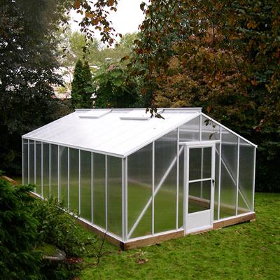 The Traditional Straight Eave Greenhouse is specifically engineered for quality and strength and designed to withstand all weather conditions. White heavy duty aluminum structure features 6mm twin-wall polycarbonate covering, extra high 5′ 6″ sidewalls for side shelving, roof bars designed to carry large hanging baskets, double wide greenhouse individual roof vents for proper ventilation, and a premium storm door with adjustable screened sliding window. This greenhouse offers the widest selection of sizes than any other kit on the market. The Traditional Straight Eave Greenhouse lengths are extendable in 2′ increments to allow for future expansion. The included instructions and step-by-step assembly video make these greenhouses easy to assemble.